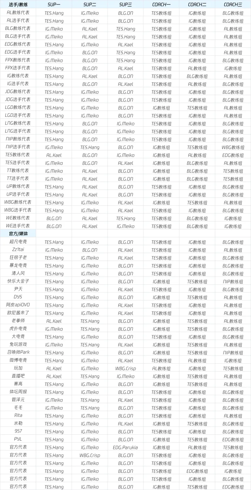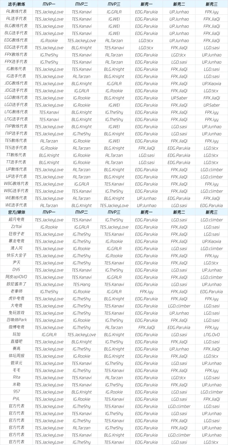LPL公布常规赛荣誉选票明细:共发放选票60张,有效选票60张